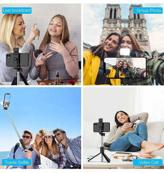 Extendable Flash 3-in-1 Selfie Stick Tripod with Bluetooth Remote