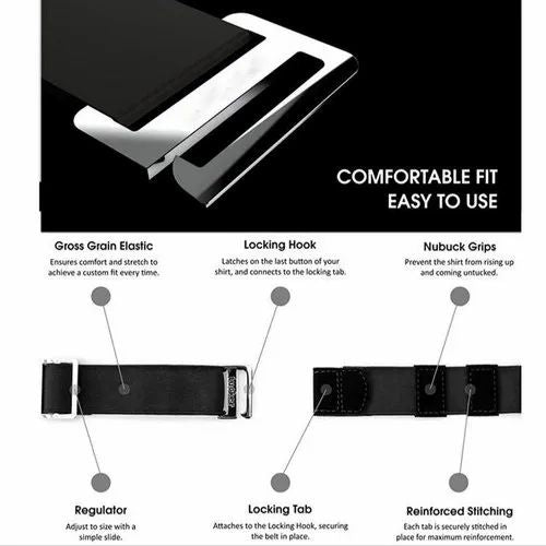 Shirt Tucker Belt Strap Maximum Strech (Fee Size) For Men/Women (unisex)- Black